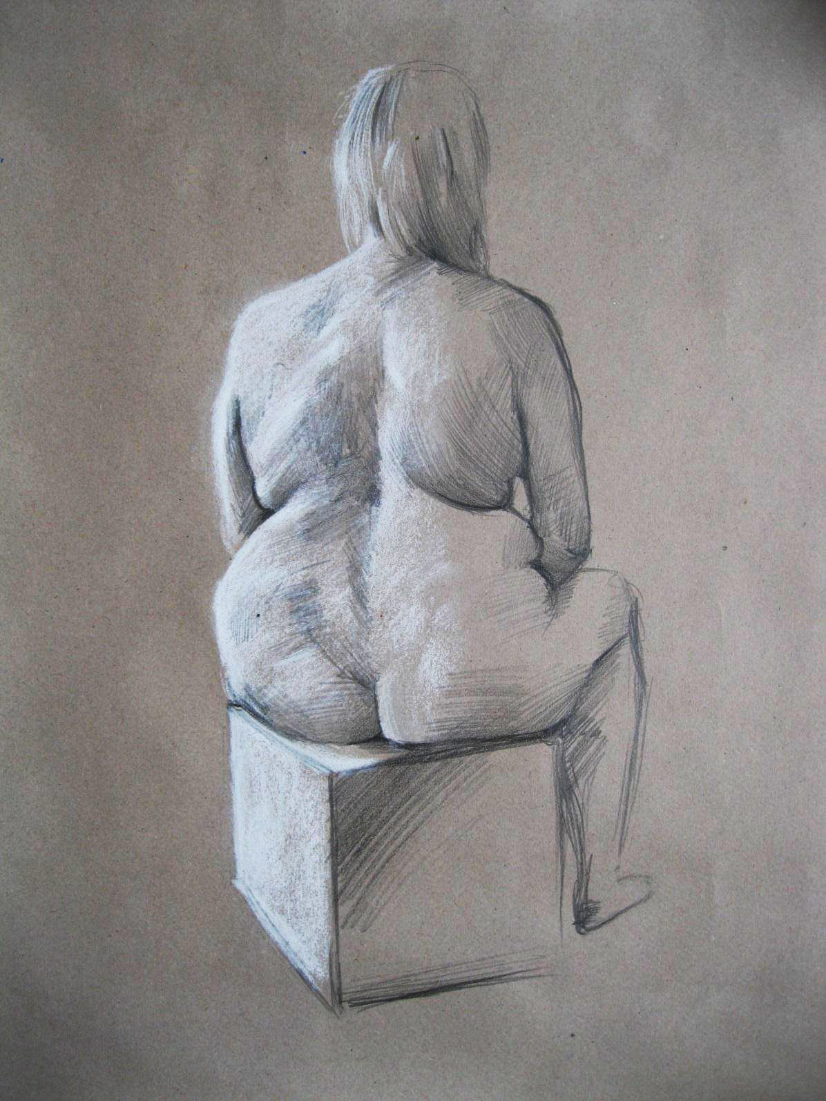 An observational study of a live model, drawn using a combination of pencil, and chalk.
